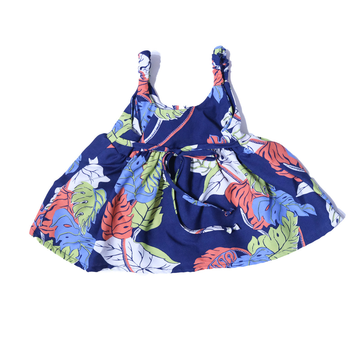 Monstera Border (Girl's Elastic Strap Sun Dress) - Navy