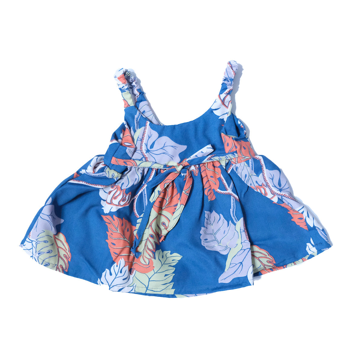 Monstera Border (Girl's Elastic Strap Sun Dress) - Teal
