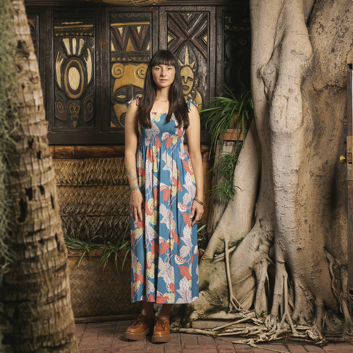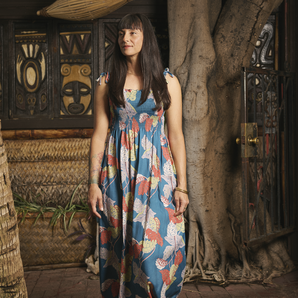 Monstera Border (Long Sun Dress) - Teal