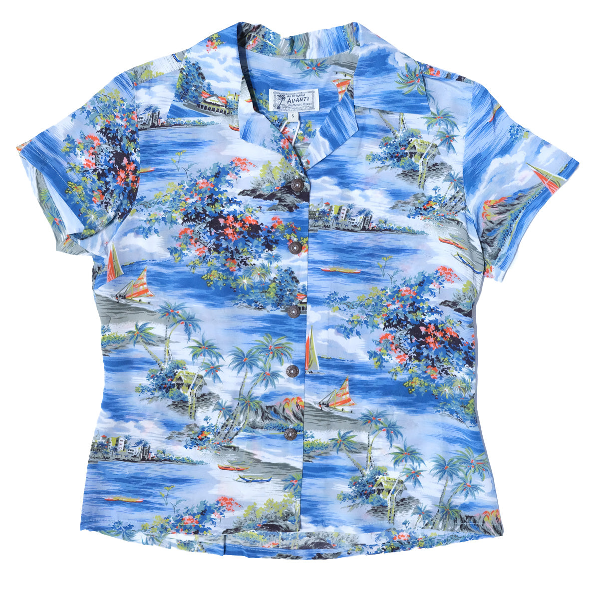 This beautiful scenic print illustrates the beauty of the islands - truly a wearable piece of art!