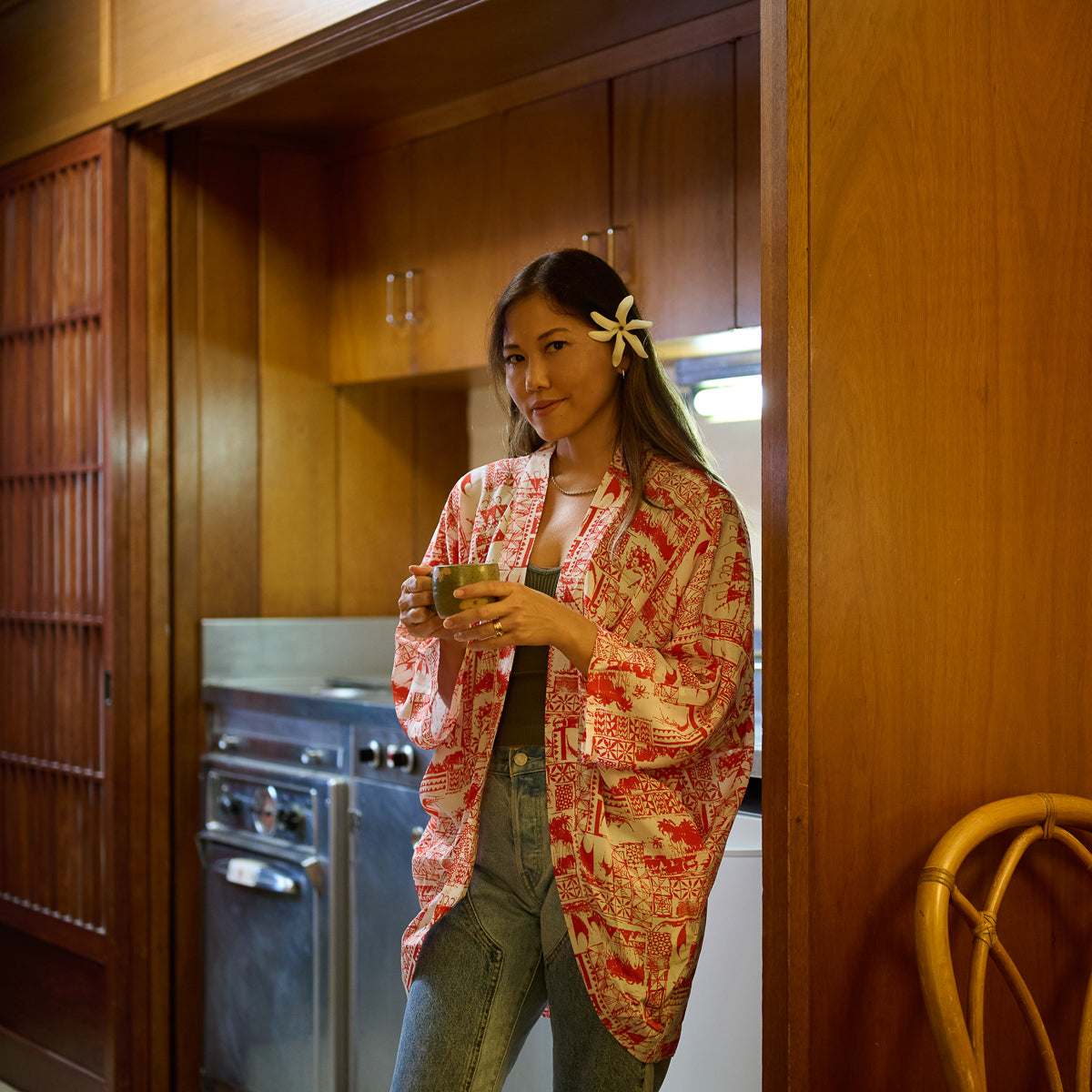 Kapa Petroglyph (Kimono Cover-Up) - Red